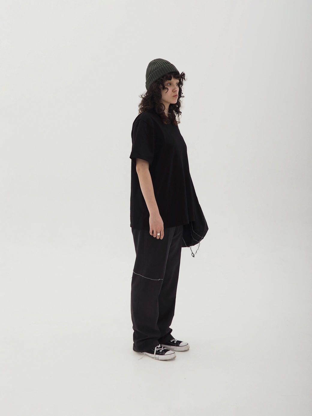 Унисекс-футболка оверсайз-силуэта из плотного хлопка. Футболка имеет прямой крой, спущенную линию плеча, круглую горловину с окантовкой, рукава умеренной ширины.
